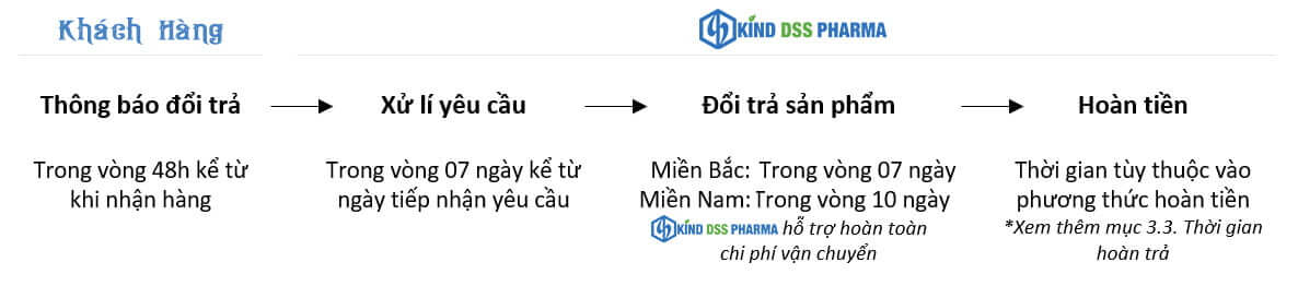 Với các trường hợp trên, Kind Dss Pharma hỗ trợ khách hàng đổi sản phẩm đúng và nguyên vẹn, bổ sung sản phẩm còn thiếu hoặc trả sản phẩm và được hoàn tiền theo mục 3. Chính sách hoàn tiền.