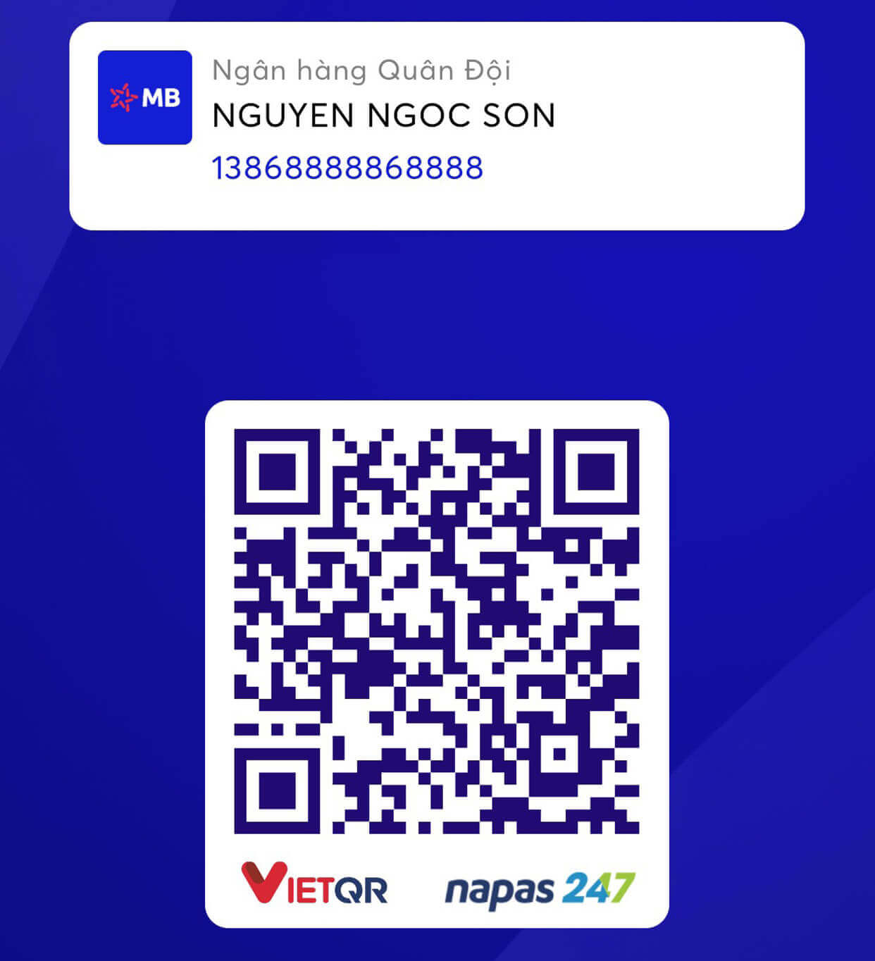 | Số tài khoản | 1386 8888 86 8888 |
