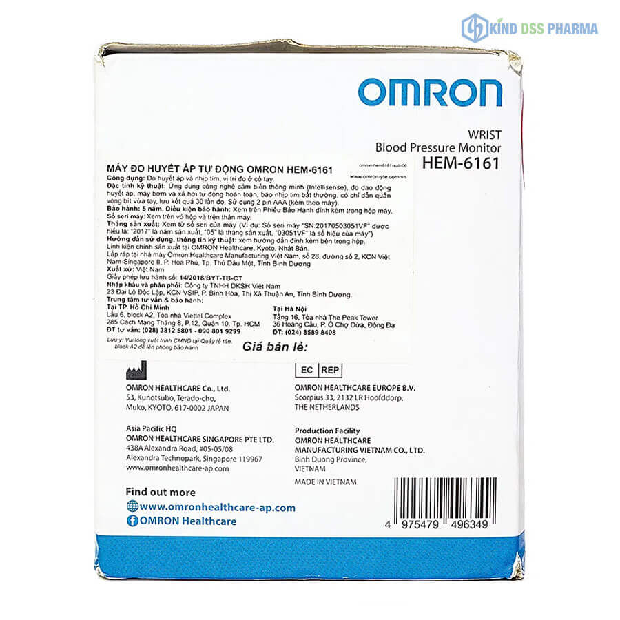 Máy đo huyết áp ở vị trí cổ tay Omron HEM-6161 được sản xuất bởi Omron Healthcare Co. – Công ty hàng đầu thế giới về Máy đo huyết áp điện tử. Công ty chuyên phát triển và sản xuất các thiết bị y tế cho gia đình và các cơ sở y tế, phần mềm quản lý sức khỏe và các dịch vụ cải thiện sức khỏe. Các sản phẩm chăm sóc sức khỏe tại nhà của Omron bao gồm: Máy đo Huyết áp, Nhiệt kế, Máy xông khí dung, Máy đo Thành phần Cơ thể, Máy đếm bước đi và Máy xung điện trị liệu. Với sứ mệnh giúp hiện thực hóa cuộc sống lành mạnh và thoải mái cho mọi người trên khắp thế giới, Omron Healthcare liên tục cố gắng tạo ra các sản phẩm chất lượng cao và cung cấp sản phẩm trên toàn cầu.