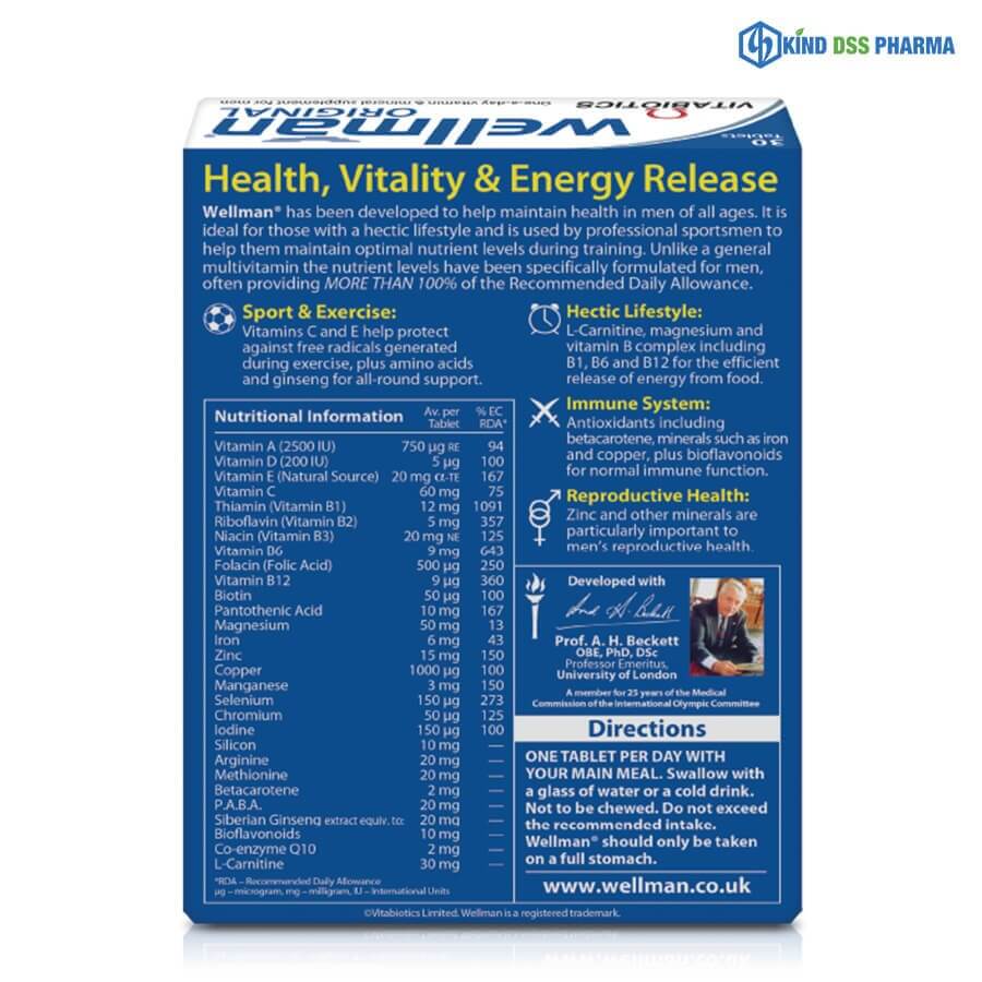 WellMan hỗ trợ bổ sung vitamin, khoáng chất, acid amin và sâm, hỗ trợ tăng cường sức khỏe, hỗ trợ nâng cao sức đề kháng, hỗ trợ hạn chế lão hóa cho nam giới